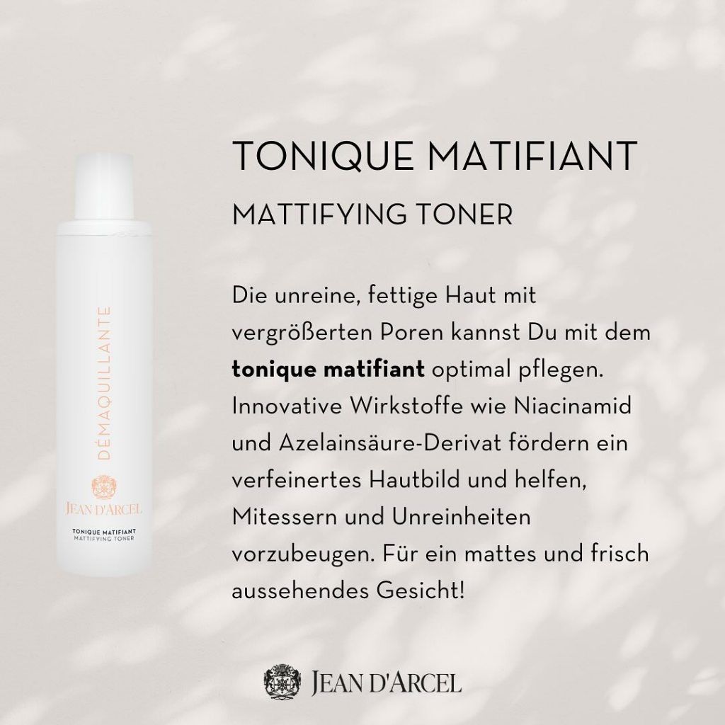 Jean d'Arcel J226 - Mattifying Toner là một loại nước cân bằng (toner) chuyên biệt, được thiết kế để hoàn thiện bước làm sạch cho làn da hỗn hợp và da có xu hướng tăng tiết dầu. Sản phẩm này hoạt động bằng cách nhẹ nhàng loại bỏ những cặn sữa rửa mặt còn sót lại, đồng thời cân bằng độ pH tự nhiên của da, giúp da trở về trạng thái lý tưởng để hấp thụ các bước dưỡng da tiếp theo. Điểm đặc biệt của J226 là khả năng kiểm soát dầu thừa, se khít lỗ chân lông và mang lại cảm giác tươi mát, không bóng nhờn cho làn da. Công thức tiên tiến của toner này thường chứa các thành phần có khả năng làm dịu da, giảm viêm và hỗ trợ ngăn ngừa sự hình thành của mụn.