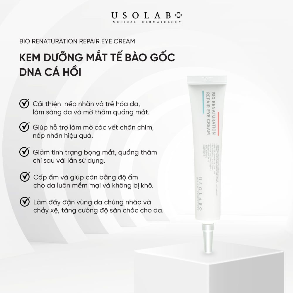 Bio Renaturation Repair Eye Cream là dòng kem dưỡng đặc trị vùng mắt chuyên sâu thuộc phân khúc dược mỹ phẩm cao cấp của Usolab (Hàn Quốc).